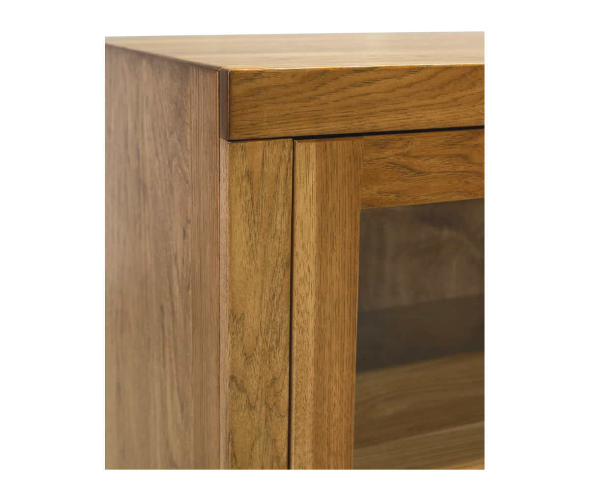 Features: • Plain glass doors • Plain wood back • One adjustable wood shelf